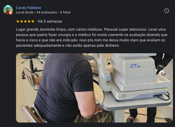 Antes da cirurgia, nossos oftalmologistas realizam exames detalhados para avaliar a necessidade da cirurgia baseado nos hábitos do paciente, dificuldade para enxergar e prognóstico cirúrgico, entre outros.