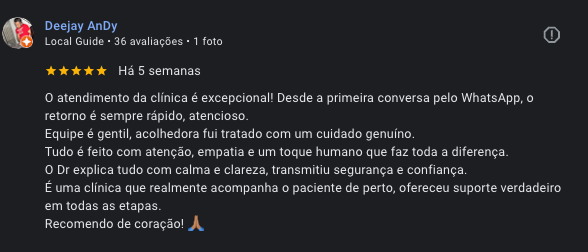 Da primeira consulta até o acompanhamento pós-operatório, nossa equipe oferece o suporte necessário para uma recuperação tranquila e eficaz.